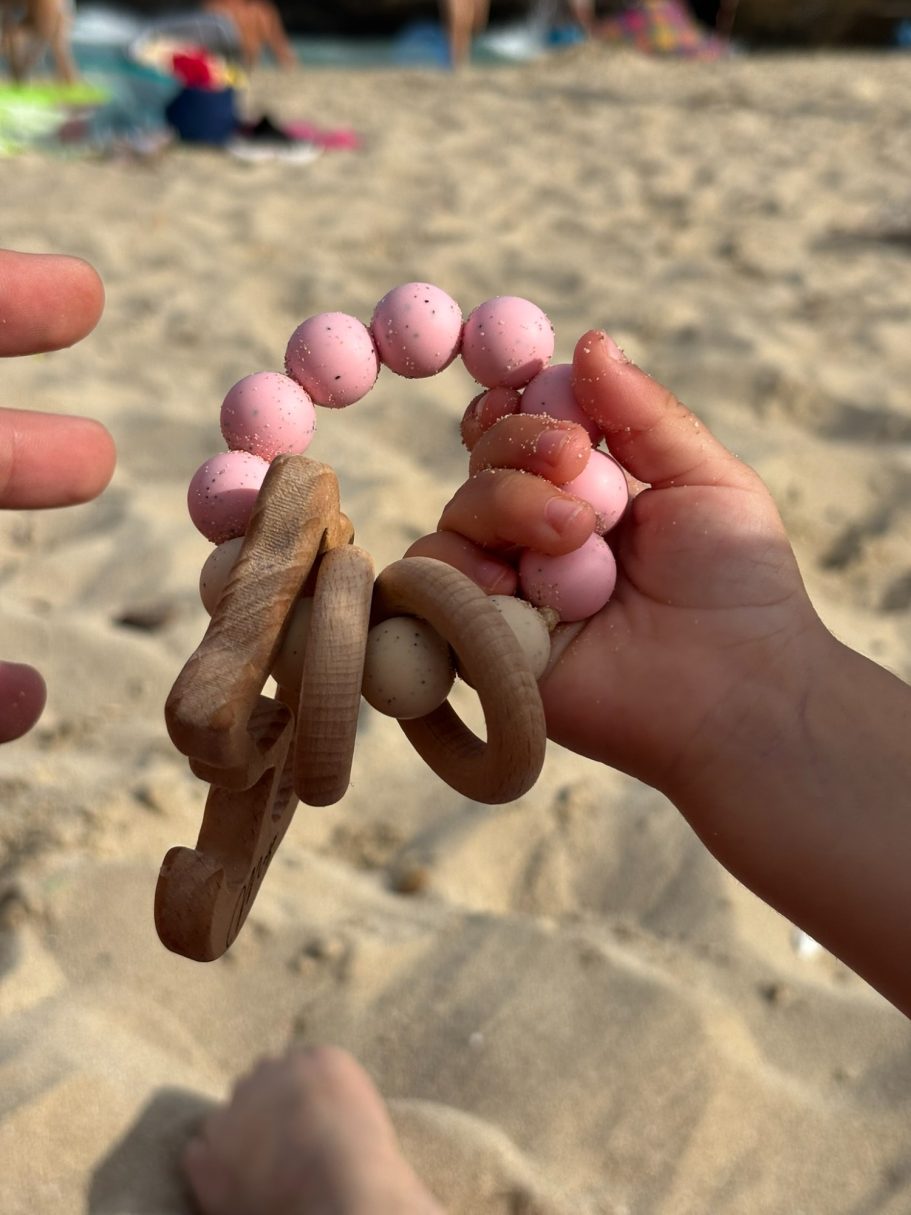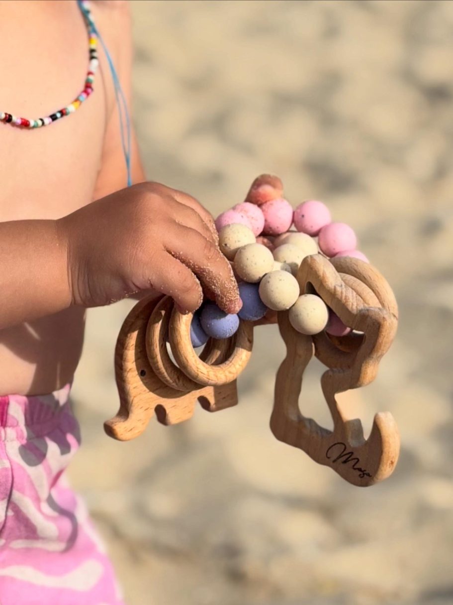 BESTSELLER! Unser hochwertiges 2-teiliges Geschenkset besteht aus einem Greifling und einem Greifstab – gefertigt aus natürlichem Buchenholz und kombiniert mit weichen Silikonperlen.