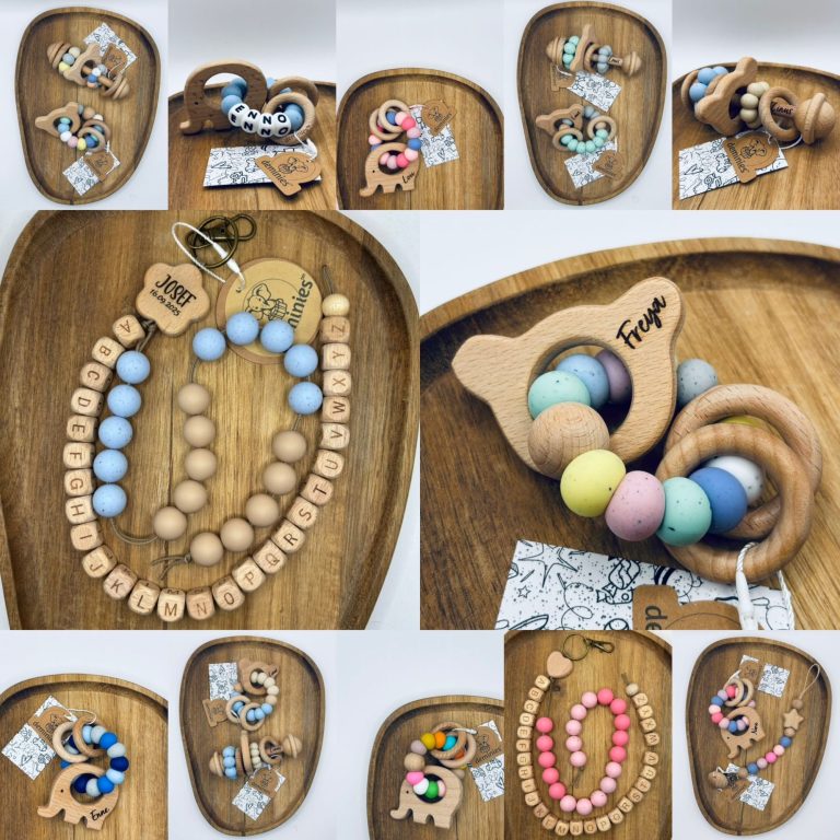 Unsere Greiflinge sind liebevoll gestaltete Spielbegleiter für Babys und Kleinkinder. Sie liegen perfekt in kleinen Händen und laden zum Greifen, Tasten und Entdecken ein. Durch die Kombination aus verschiedenen Materialien – wie weichem Silikon und warmem Buchenholz – bieten sie spannende Haptik und Sinneserlebnisse, die die Feinmotorik und Hand-Augen-Koordination spielerisch fördern. Alle Greiflinge sind hochwertig verarbeitet, sicher für Babys und auf Wunsch personalisiert erhältlich.